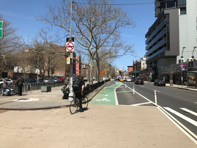 IMG_6697 04/14/2017 4032 × 3024 Days 1-2: If I can’t make it here, I’ll make it… in SF!?! Bike lanes in NYC?!? This new street striping made me think of Berlin. Pedestrians: get cross-training!
