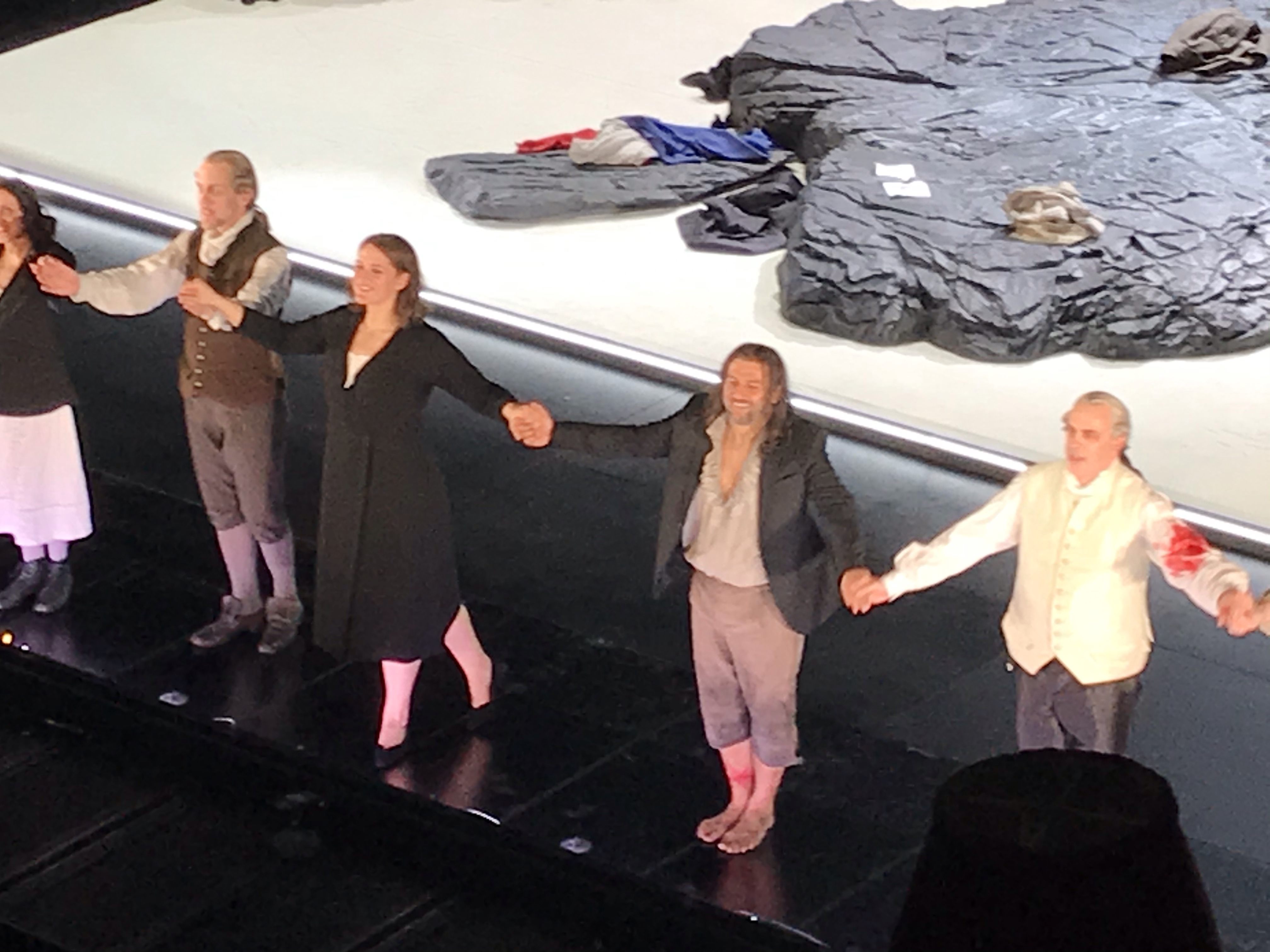 The new production by a German director was very choppy. In the first act, the historical setting is preserved, but the second act suddently jolts us into a modern day setting. The chorus, clad in black, serves as the audience in judging the scene. Fidelio, played by superstar Jonas Kaufmann, sings his chained lament before he is freed. Kaufmann performed for a total of only about ten minutes! The real star was Leonore, played by Lise Davidsen.