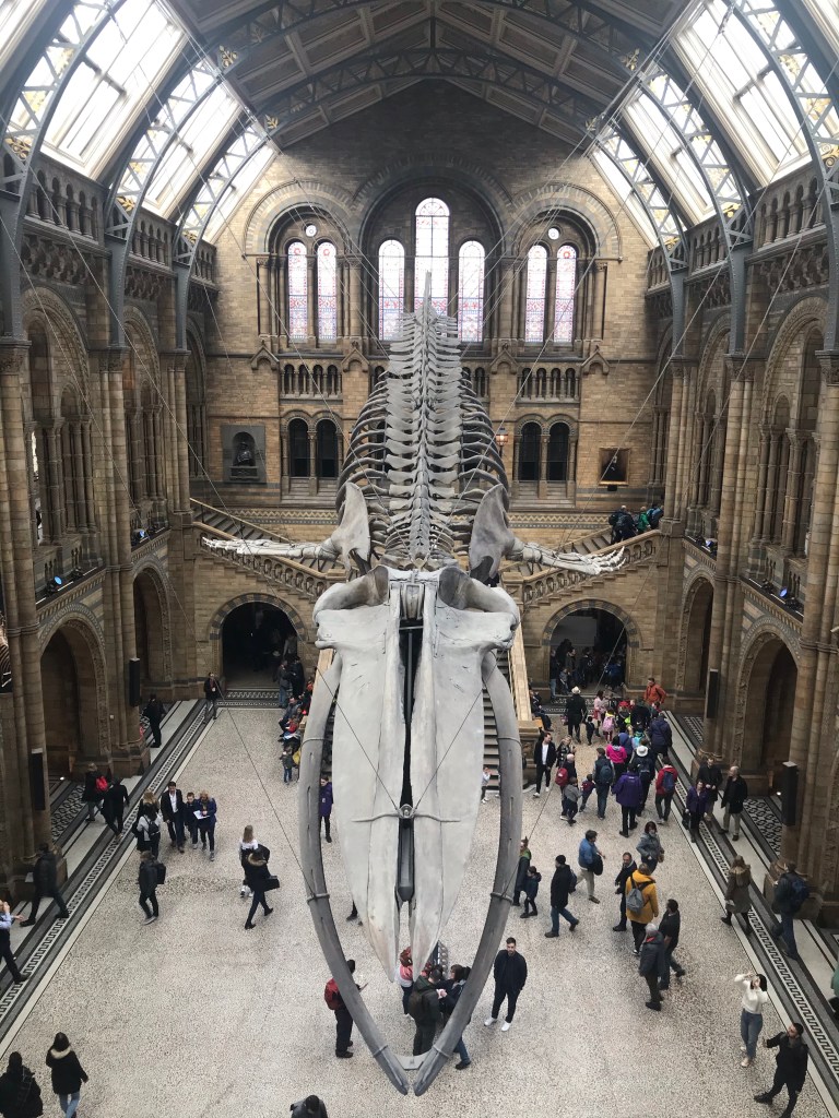 A quick walk down the block from the hotel to the Natural History Museum confirmed my suspicion. The dinosaurs were the highlight, with the blue whale suspended in the Great Hall perfectly proportioned to its size.