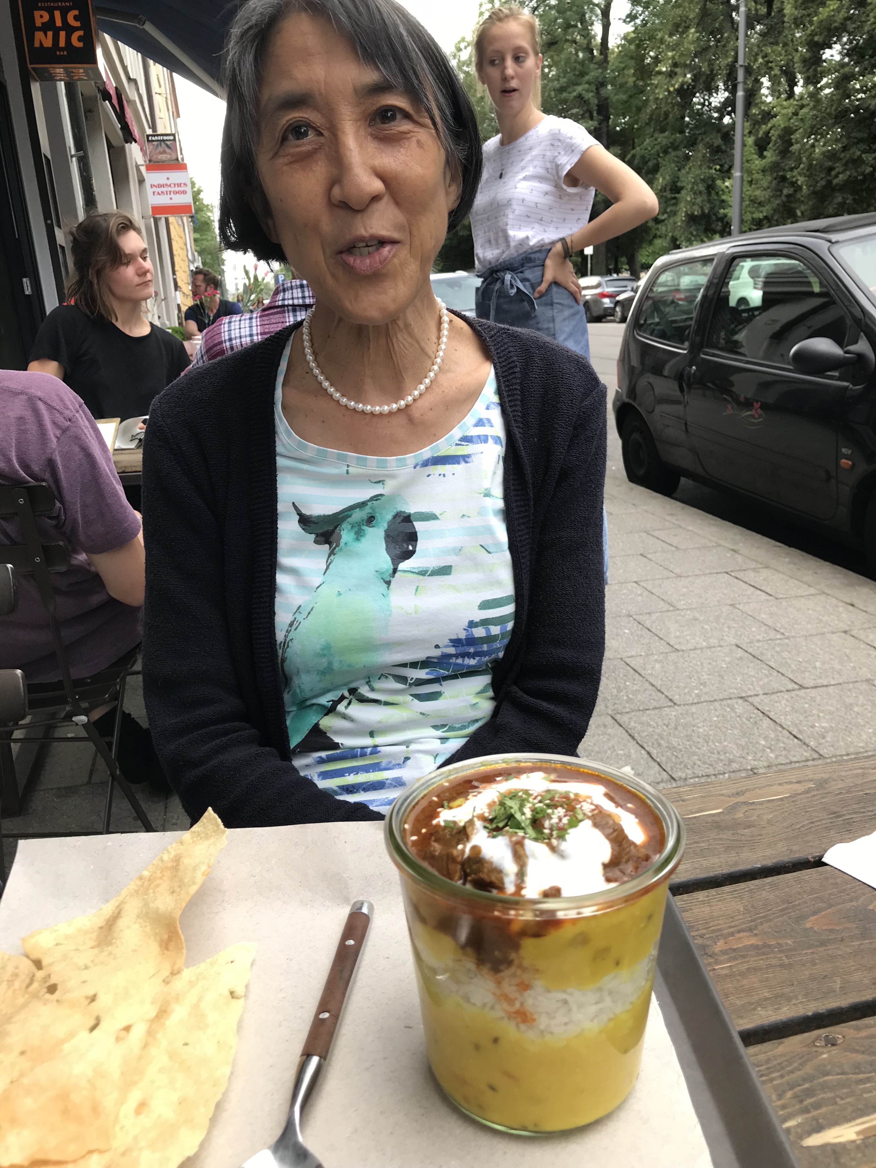 The Currywurst in Germany started the downhill spiral, and now every immigrant dreams about his or her own ethnic take-away. Yesterday I bought my Japanese-style chicken teriyaki and rice from a hawker, who spoke in broken English but actually was Chinese. The fast food the vender was selling gave a mixed message—sell processed ethnic food that is predictable and a reasonable facsimile of food imagined from 50 years ago. Don’t worry about authenticity.