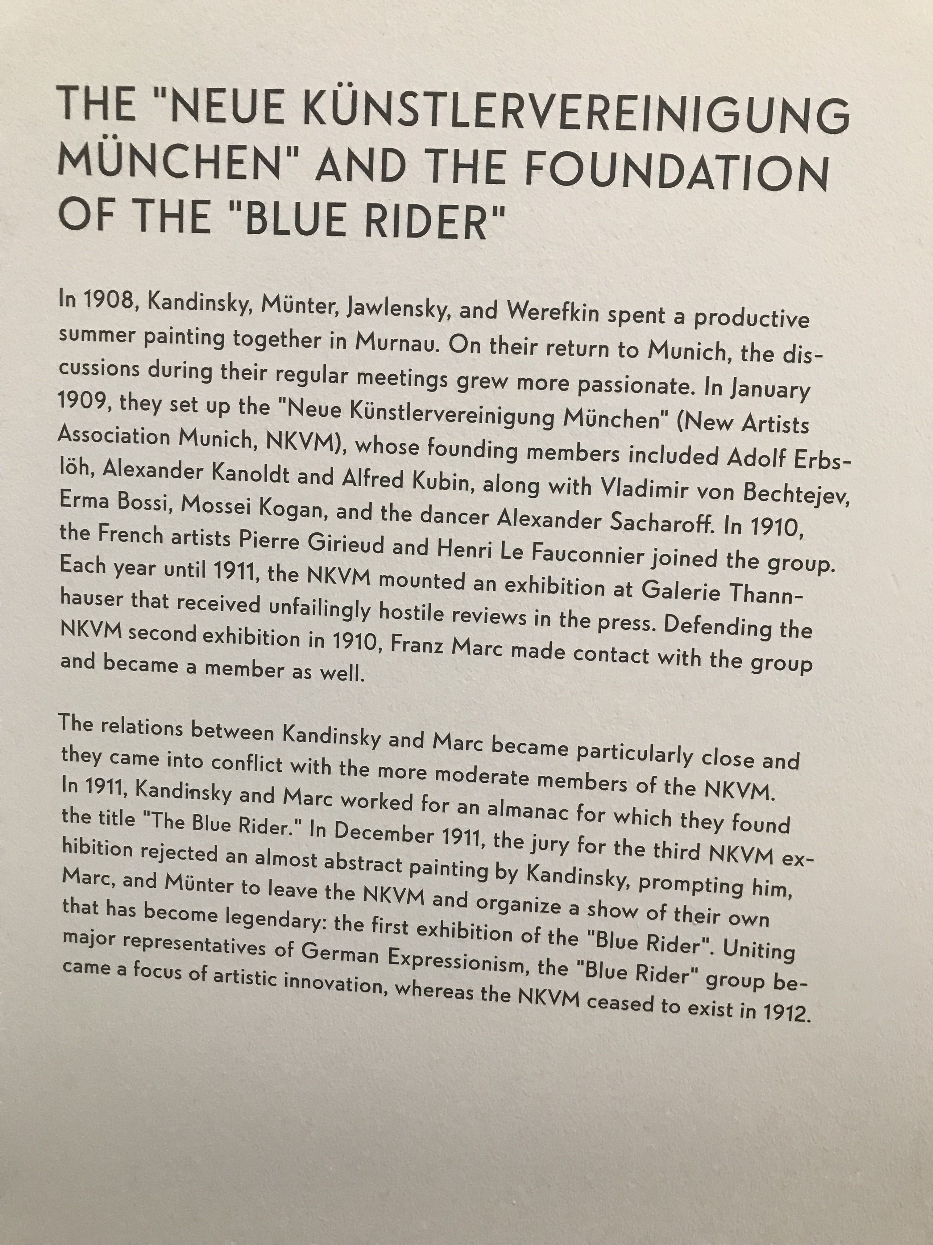 I could only remember that Helena had told me about something Blue that was on display there. After all, Helena and I had just seen Vermeer’s Woman in Blue Reading a Letter the week before, right? At first, I thought it was the Blue Wonder, then I remembered, no, that’s a bridge in Dresden. After I ripped through a gaggle of galleries searching for the missing identity, I finally asked the guide where the Blue Rider was located. His answer: they’re everywhere! I was perplexed at first, then realized that its…a movement.
