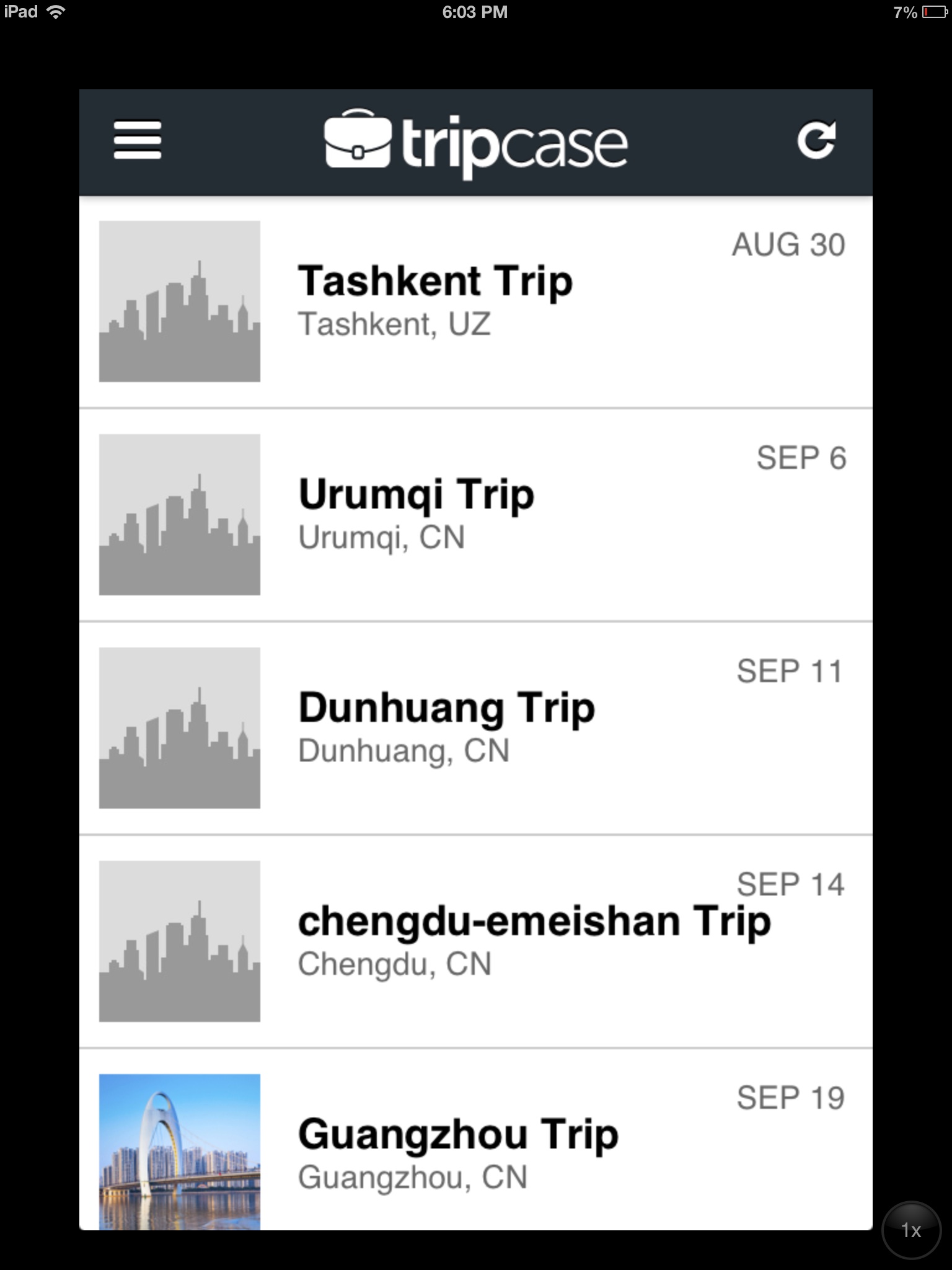 I am adding the following additional trips, all taken this year: